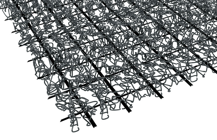 Противоэрозионный геомат из экструдированных полипропиленовых нитей, переплетенных и термоскрепленных между собой, армированный геосеткой из полиэфирных волокон с полимерным покрытием. Применяется для противоэрозионной защиты склонов повышенной крутизны.