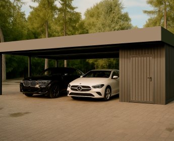 Навес — это не только защита от осадков. Лаконичная геометрия и продуманные детали помогают поддержать общий стиль участка, а модульный подход позволяет добавлять полезные зоны хранения (хозблок, стеллажи, велопарковку) без перегруза пространства. Благодаря универсальности компоновок карпорты одинаково уместны рядом с классическими коттеджами и современными минималистичными фасадами.