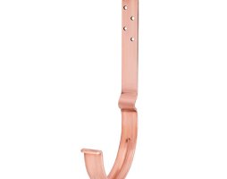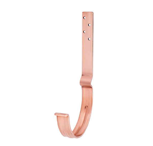 Крюк крепления желоба удлиненный служит для крепления желоба, одновременно обеспечивая дополнительную поддержку геометрических параметров желоба. При помощи крюков обеспечивается необходимый уклон для движения воды в желобе в нужном направлении. Крюки крепления желоба цельнометаллические, изготовлены из стали толщиной 4 мм, что обеспечивает им их прочность. Также крюки имеют дополнительное ребро жесткости, что позволяет им выдерживать большие силовые нагрузки.