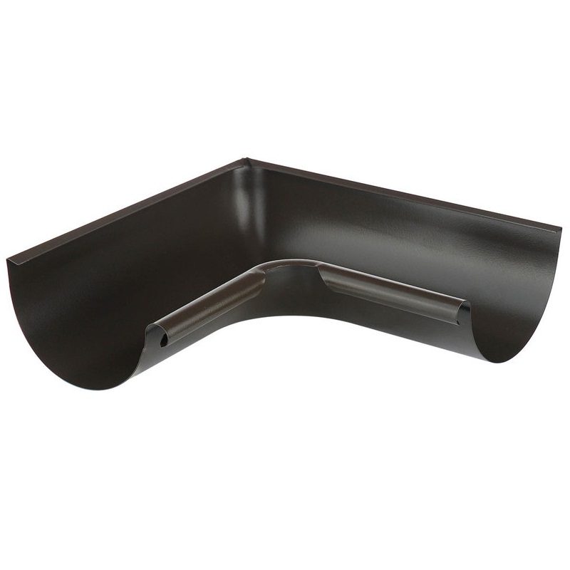 Угол желоба наружный 90° устанавливается на внешних углах кровли и предназначен для изменения направления движения воды. Угол выполнен по уникальной технологии без сварного шва (цельнометаллический).