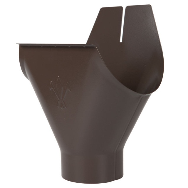 Воронка желоба устанавливается на водосточном желобе и является устройством, передающим поступающую из желоба воду в водосточную трубу. Не требует дополнительных мер по герметизации. Надежность воронки желоба обеспечивается наличием усиленного ребра жесткости в передней части.