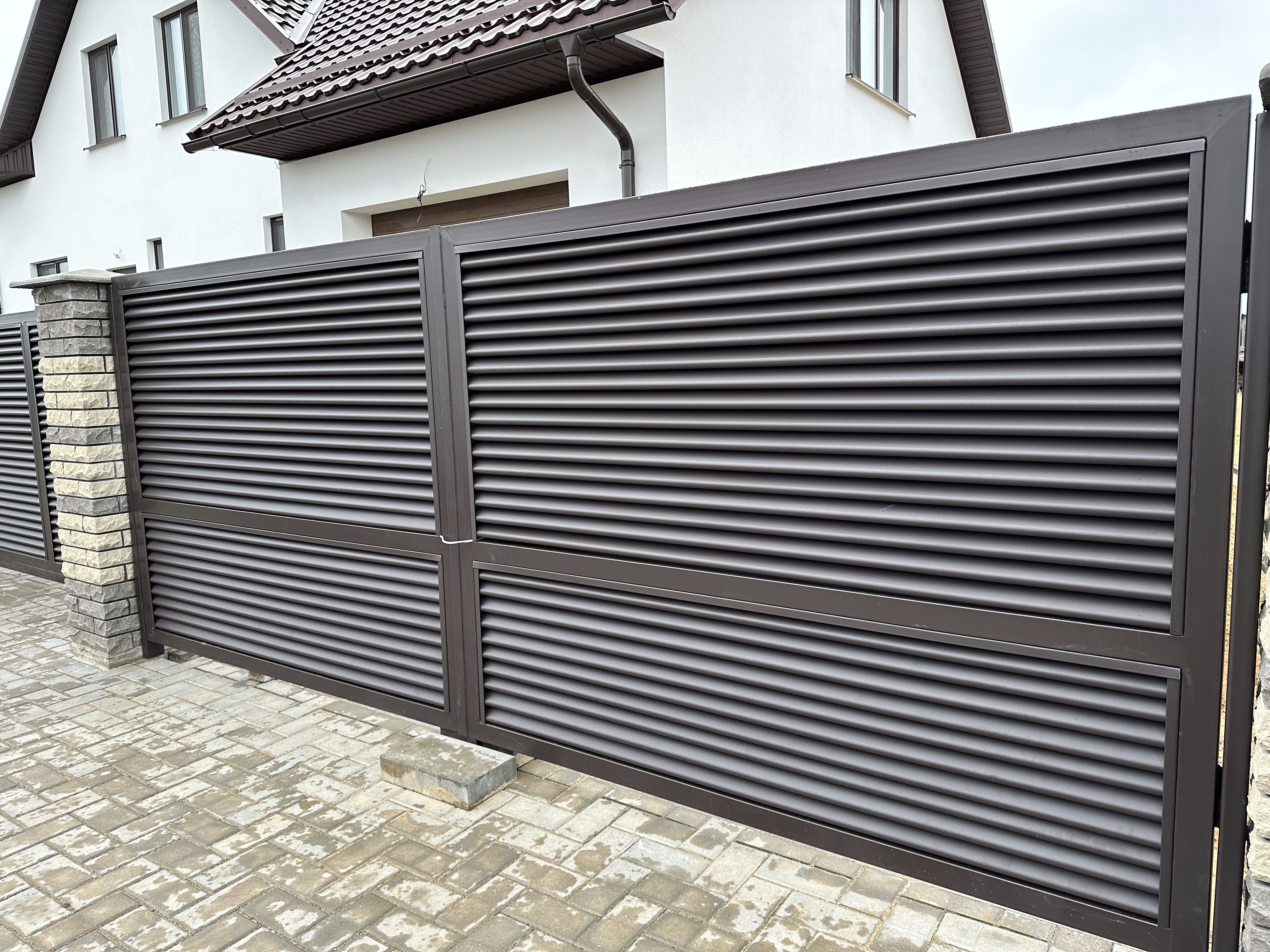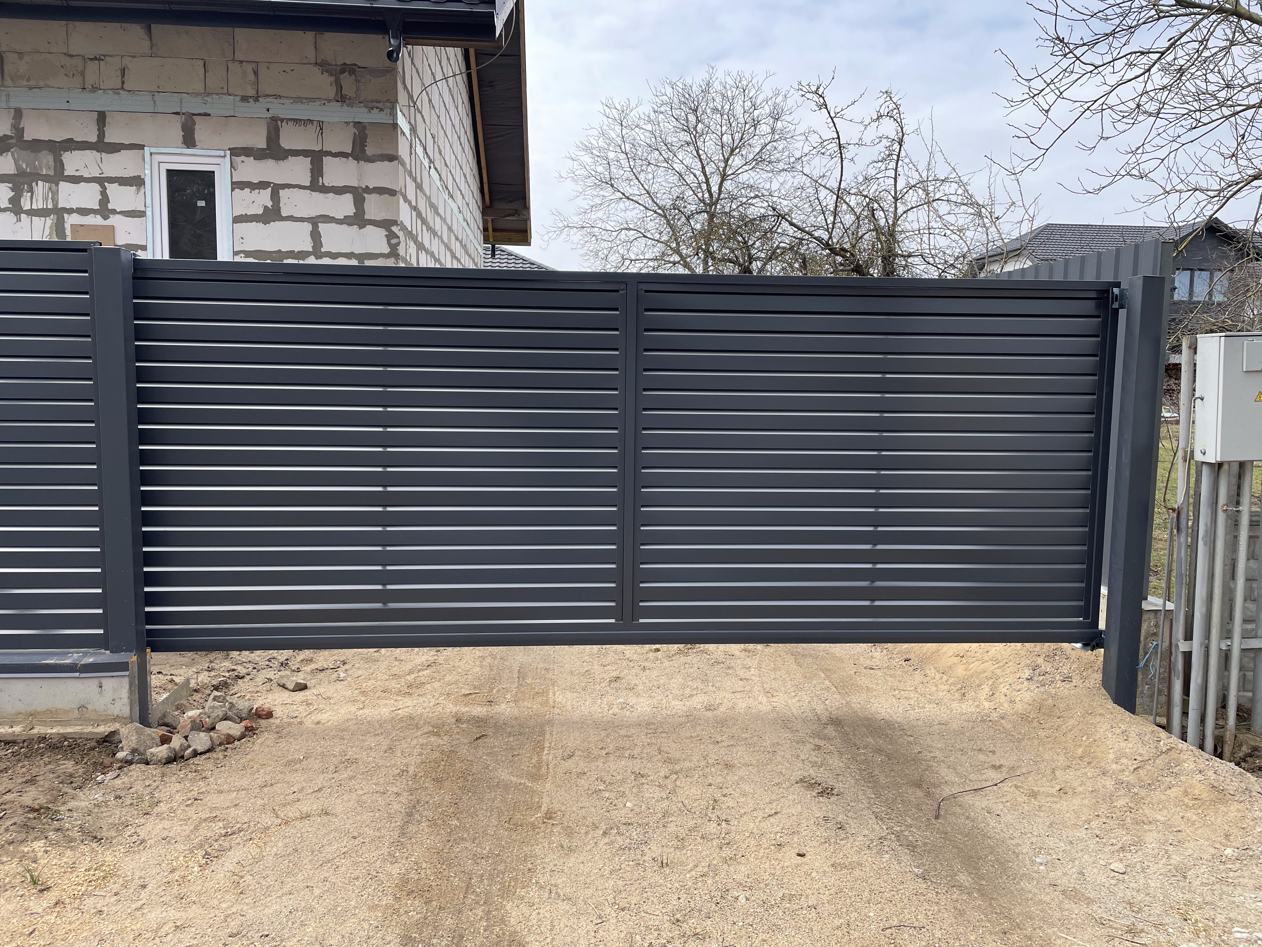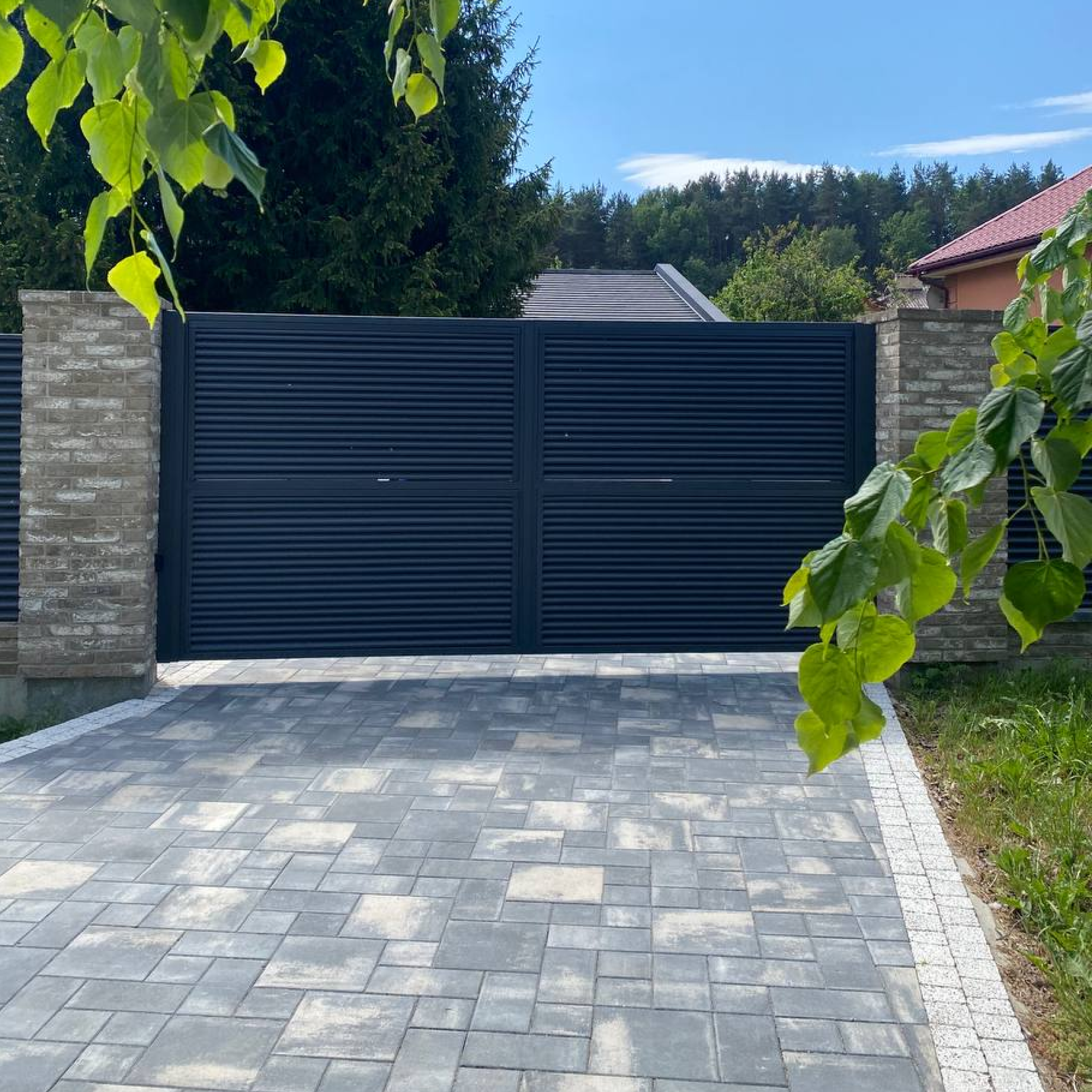 Откатные ворота представлены в двух исполнениях: алюминиевые и стальные конструкции. Распашные ворота также доступны в двух вариантах: алюминиевые и стальные модели. Для обеспечения безопасности предлагаются калитки из алюминия и стали.