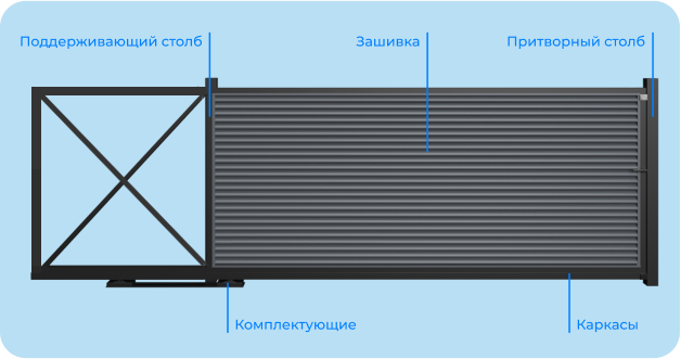 Все ворота комплектуются фурнитурой собственного производства, что гарантирует высокое качество и надежность конструкции.