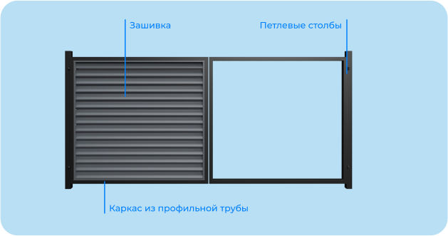 - Петлевой столб: 60х60х3 мм (2 шт.)