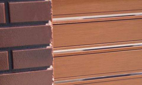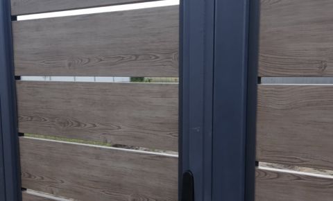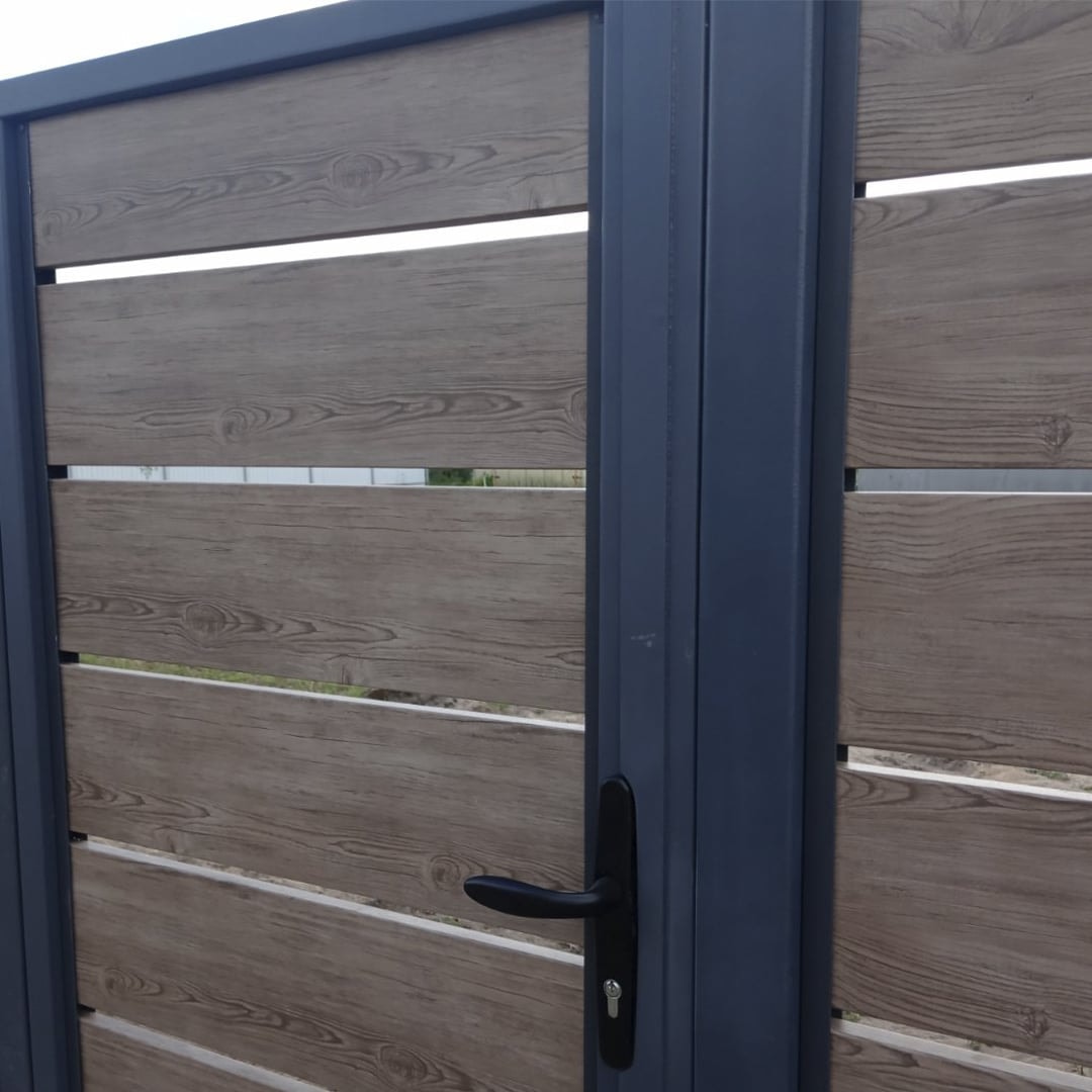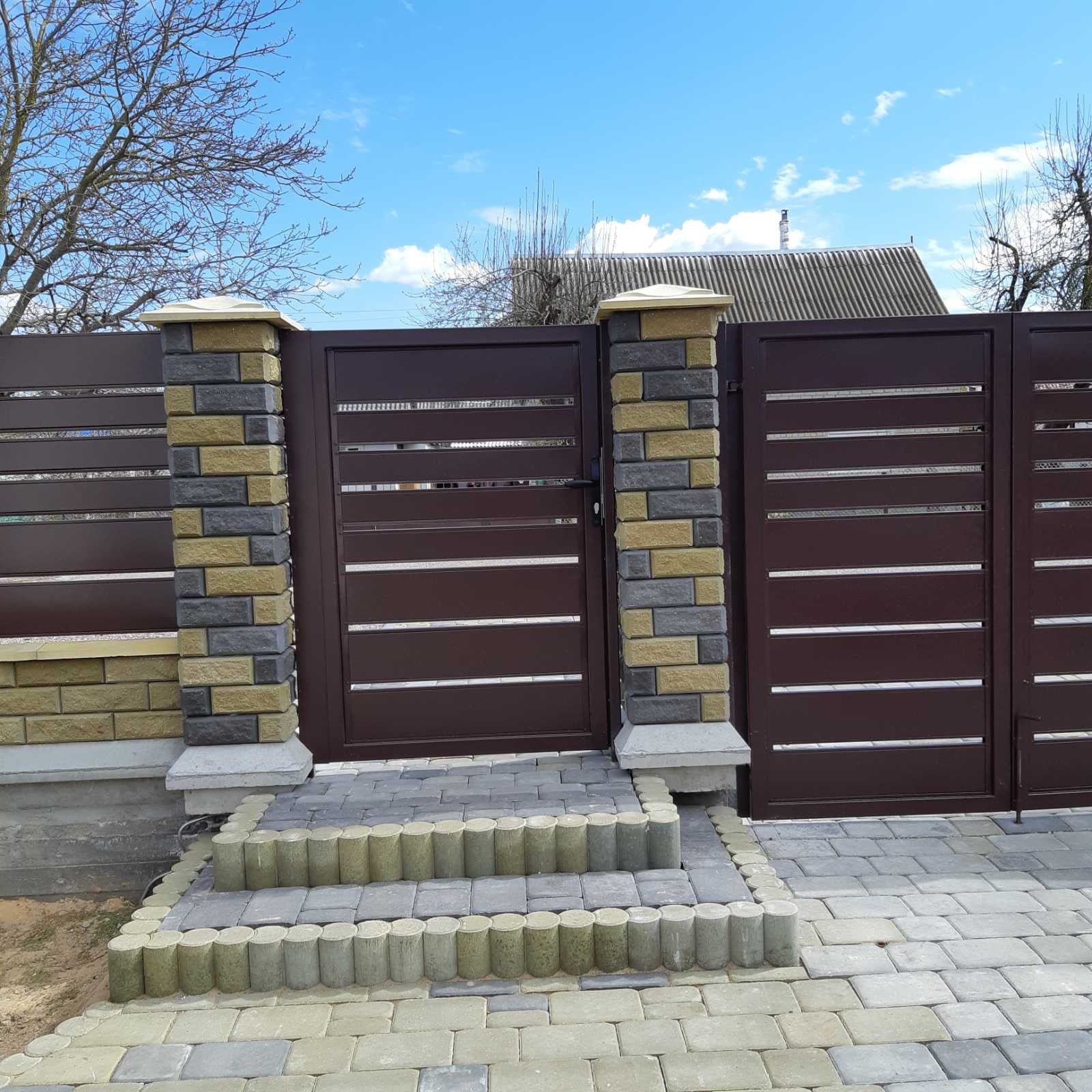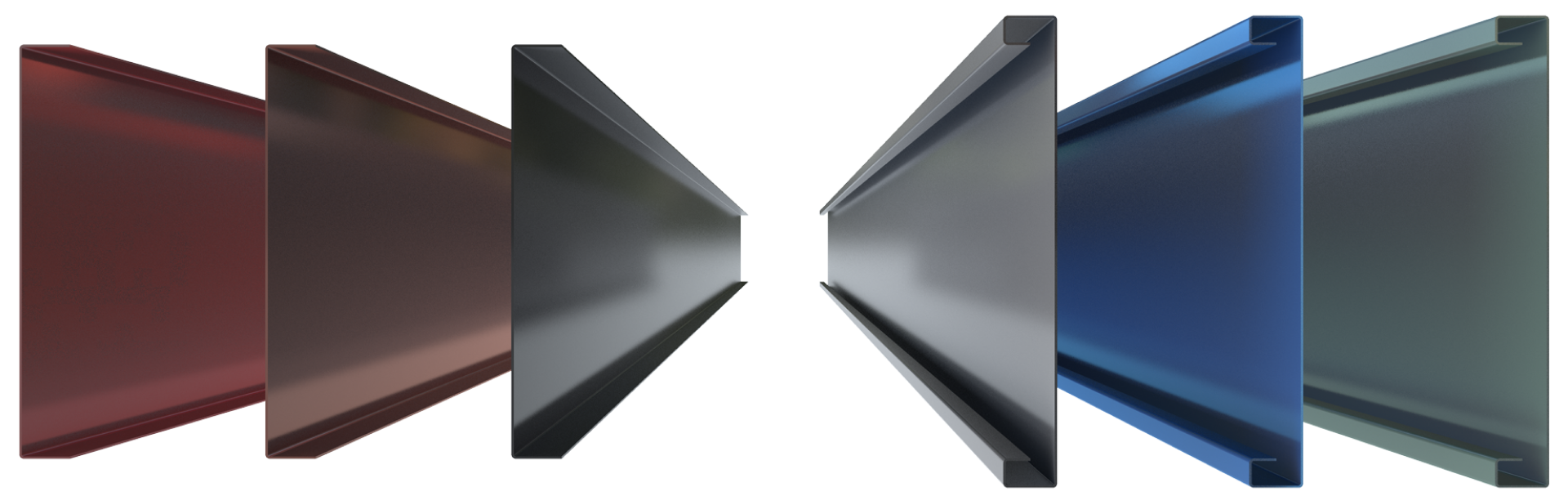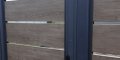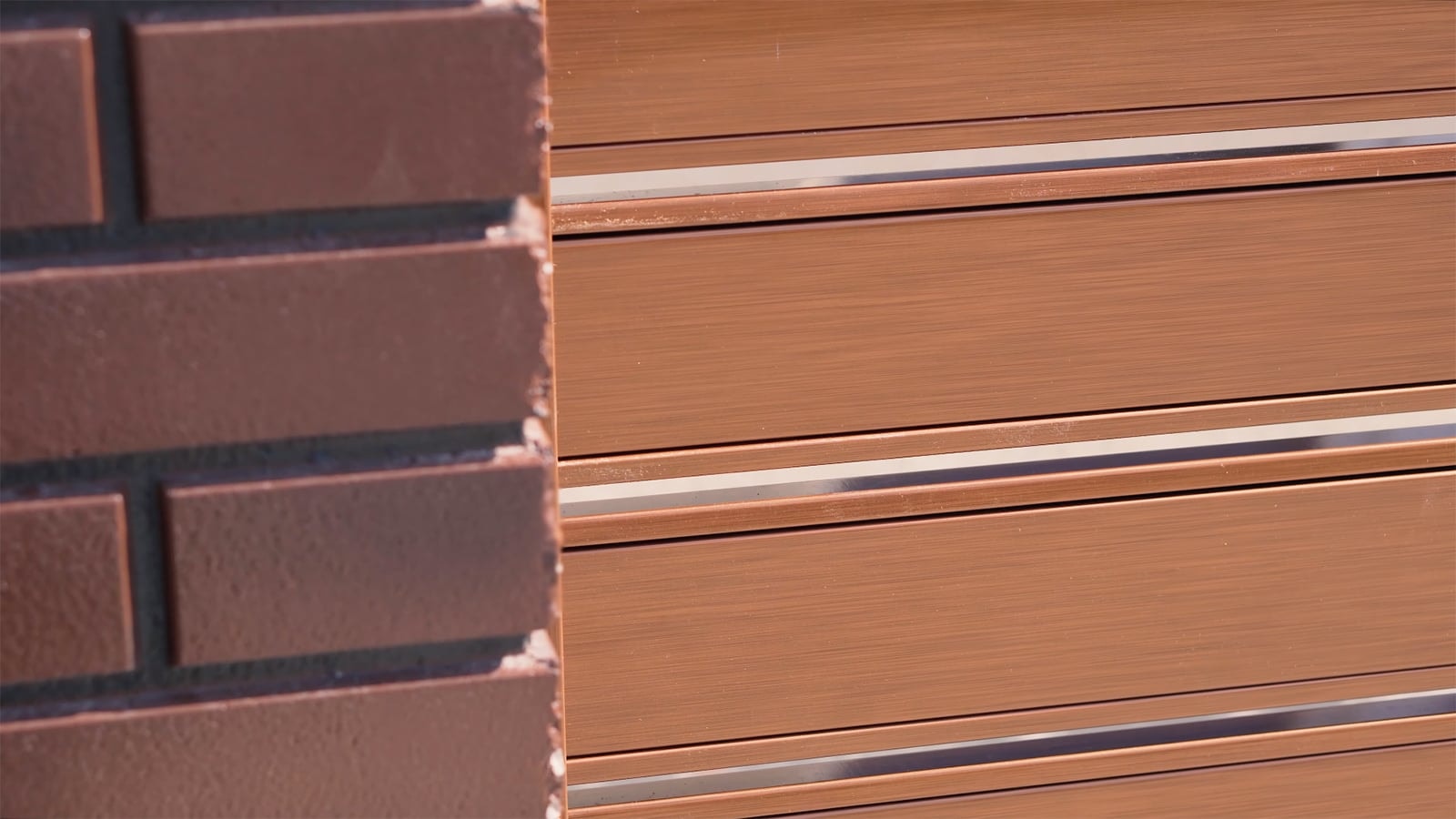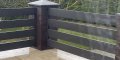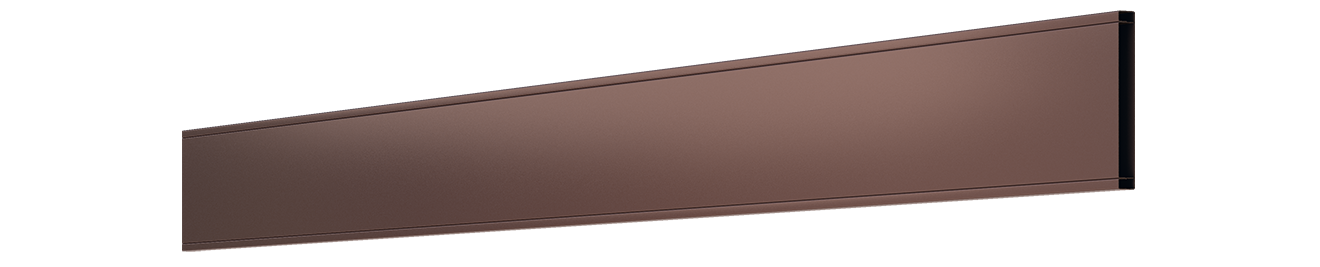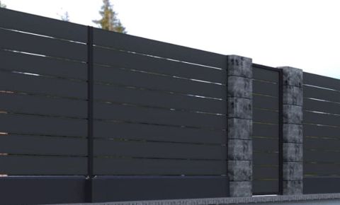 Ширина модуля — 190 мм. Забор собирается из двух элементов, которые соединяются в единую конструкцию. Эта особенность позволяет комбинировать планки с разными цветами покрытия, создавая уникальные визуальные акценты. Расстояние между планками регулируется: минимальный зазор формирует почти глухую поверхность, максимальный — добавляет легкость и воздушность.