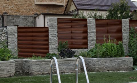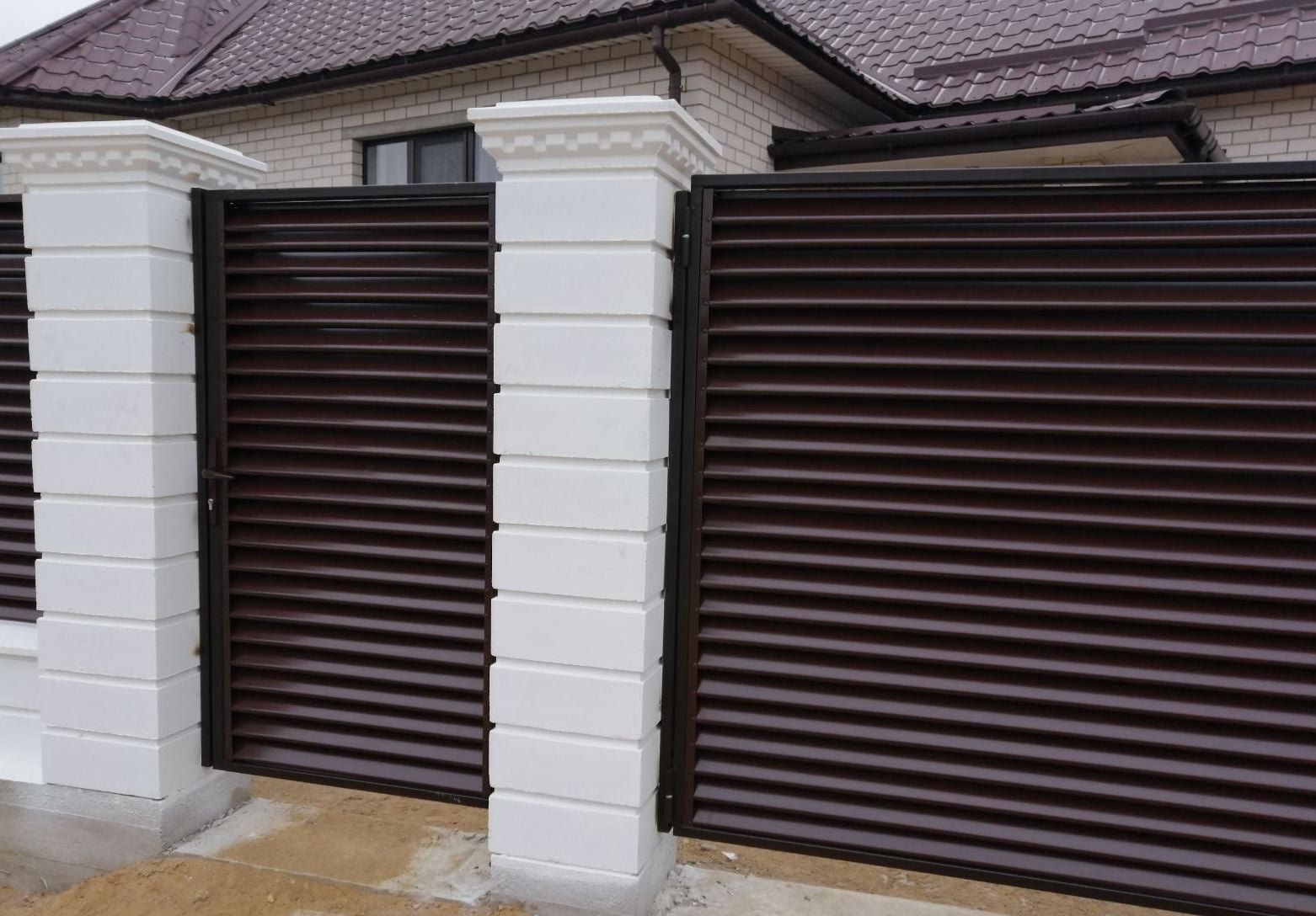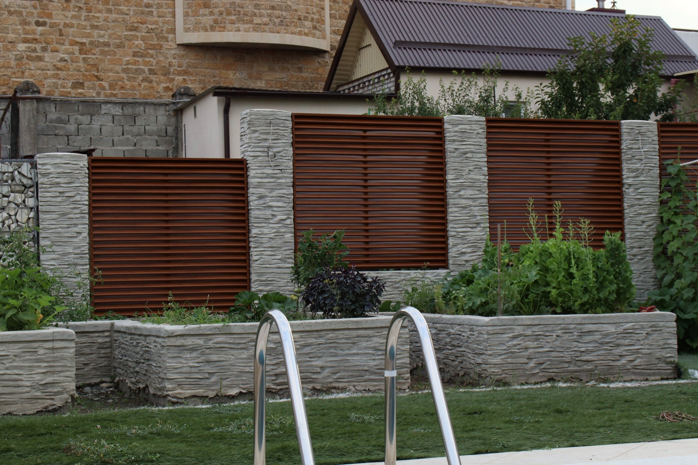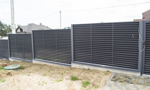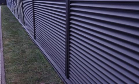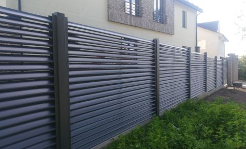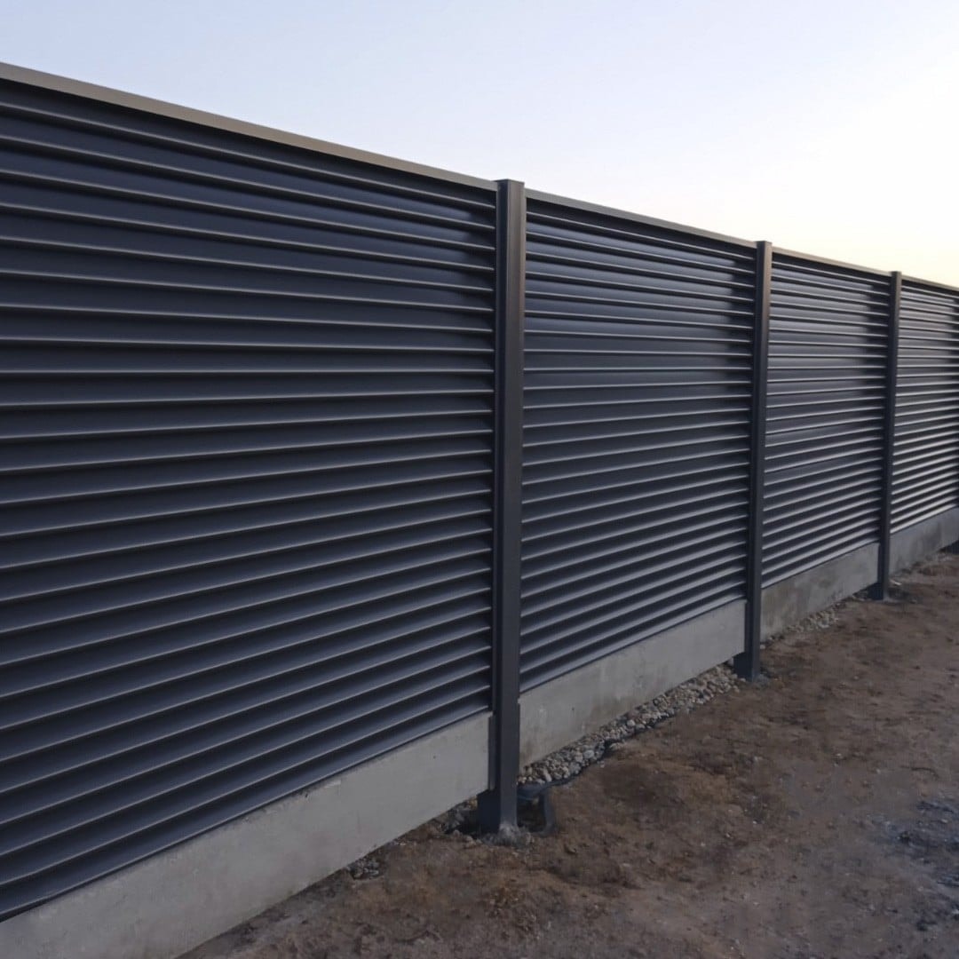 Модель «Виола» сохраняет каноны классического забора-жалюзи, но отличается уменьшенными пропорциями, придающими конструкции особую элегантность. Узкий профиль ламели (ширина полки 82 мм) с мягким радиусом изгиба 12 мм визуально облегчает ограждение, делая его идеальным для участков с ландшафтным дизайном в стиле прованс или минимализм.