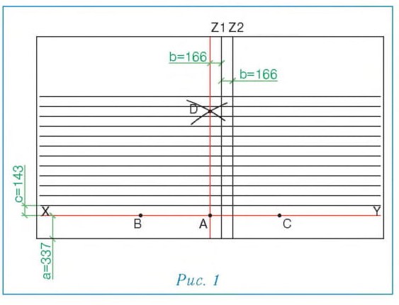 - параллельно АD на расстоянии b= 16,6 см отбейте линию Z1;
