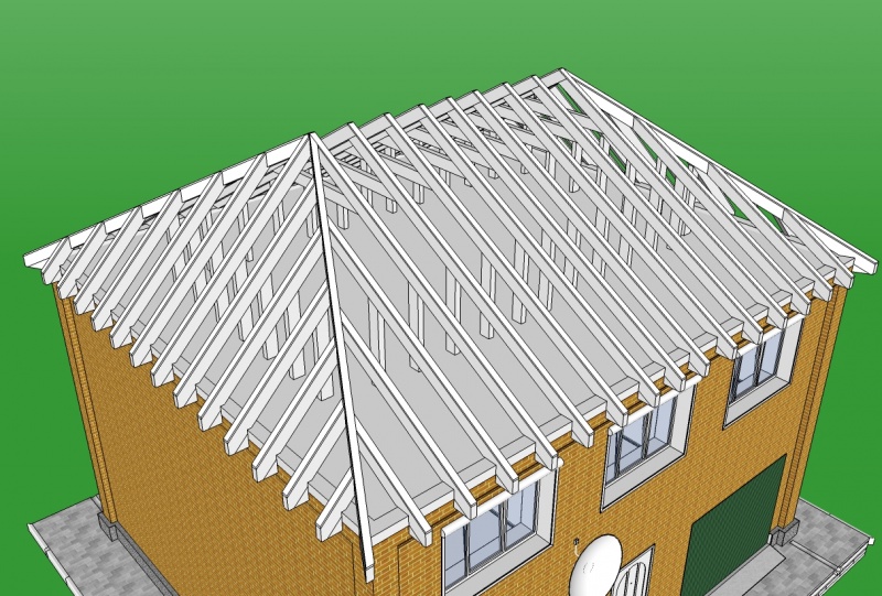 Эта крыша имеет четыре треугольных ската, сходящихся наверху в одной точке, поэтому часто ее еще называют пирамидальной. Стропильная система такой крыши довольно сложная, так как, в отличие от обычной односкатной крыши, требует расчета создаваемой нагрузки на все четыре стены дома.