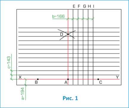 - параллельно AD на расстоянии b = 16,6 см отбейте вертикальные линии Е, F, G, Н, I;