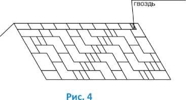 Каждый лист гибкой черепицы ФУТУРО крепится 4 гвоздями таким образом, чтобы гвоздь прошивал и верхний край низлежащего листа черепицы (рис. 2в).